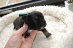 og den ene endda black og tan, er jo hvad jeg har ønsket mig meget længe. I går fik jeg taget nye billeder af hvalpene og de fik snore på, så det ikke er muligt at tage fejl af navnene. Tævehvalpen der er sort med lidt hvidt på tæerne i venstre side, kommer til at hedde Kar-Ma, hun har rødt bånd. Den sorte hvalp med hvidt på brystet kommer til at hedde Kanto, han har lyseblåt bånd. Den sorte hvalp med meget hvidt på brystet kommer til at hedde Zorro, han har blåt bånd. Den black og tan han kommer