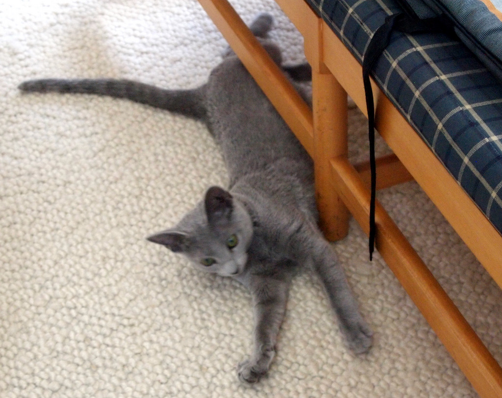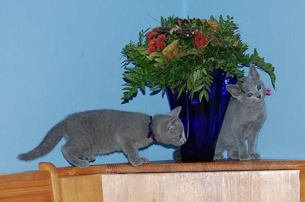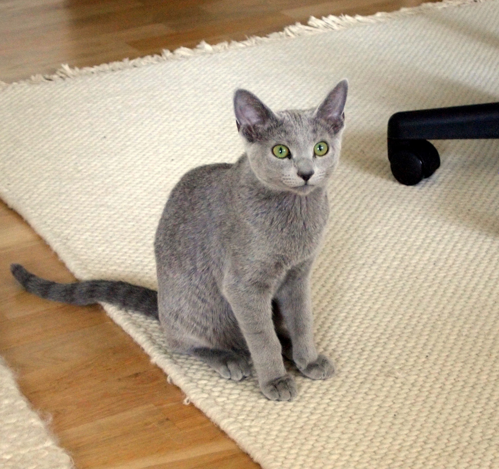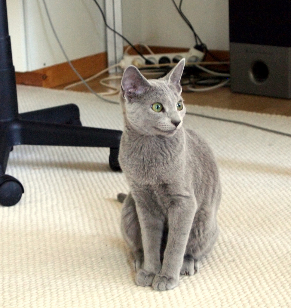 Jeg har fået de lækreste billeder af en af mine Russian Blue killinger fra sidste år og jeg er stolt over at denne kat er født her hos mig. Det er en killing efter Juliana og Kosmos og billederne taler for sig selv.