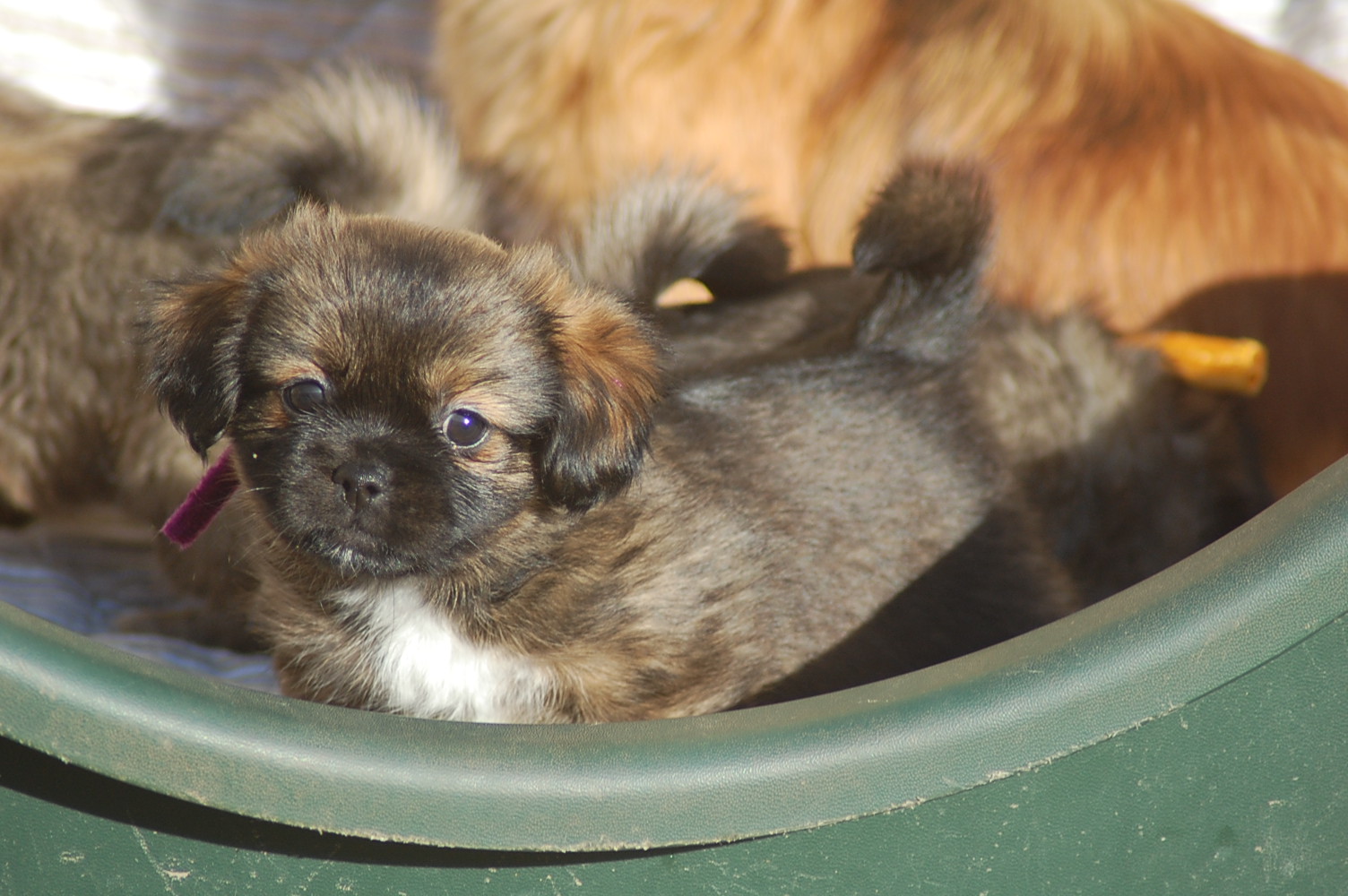 Lige siden jeg første gang så en party colour er det den farvevariant der har stået mit hjerte nær, og jeg har drømt om , engang, at lave en party med sundhed i top og lækkert temperament, ikke for stor, lækre bevægelser og pels, mørk mahogni rød / hvid farve, god udstrækning af de farvede arealer, fuldt farvet hovede, ja kort sagt alt hvad hjertet kan begære af en tibetansk spaniel i party colour. Om jeg har nået det hele ved jeg jo ikke endnu, men i Lady`s kuld er der en tævehvalp, der ser ud til at være et