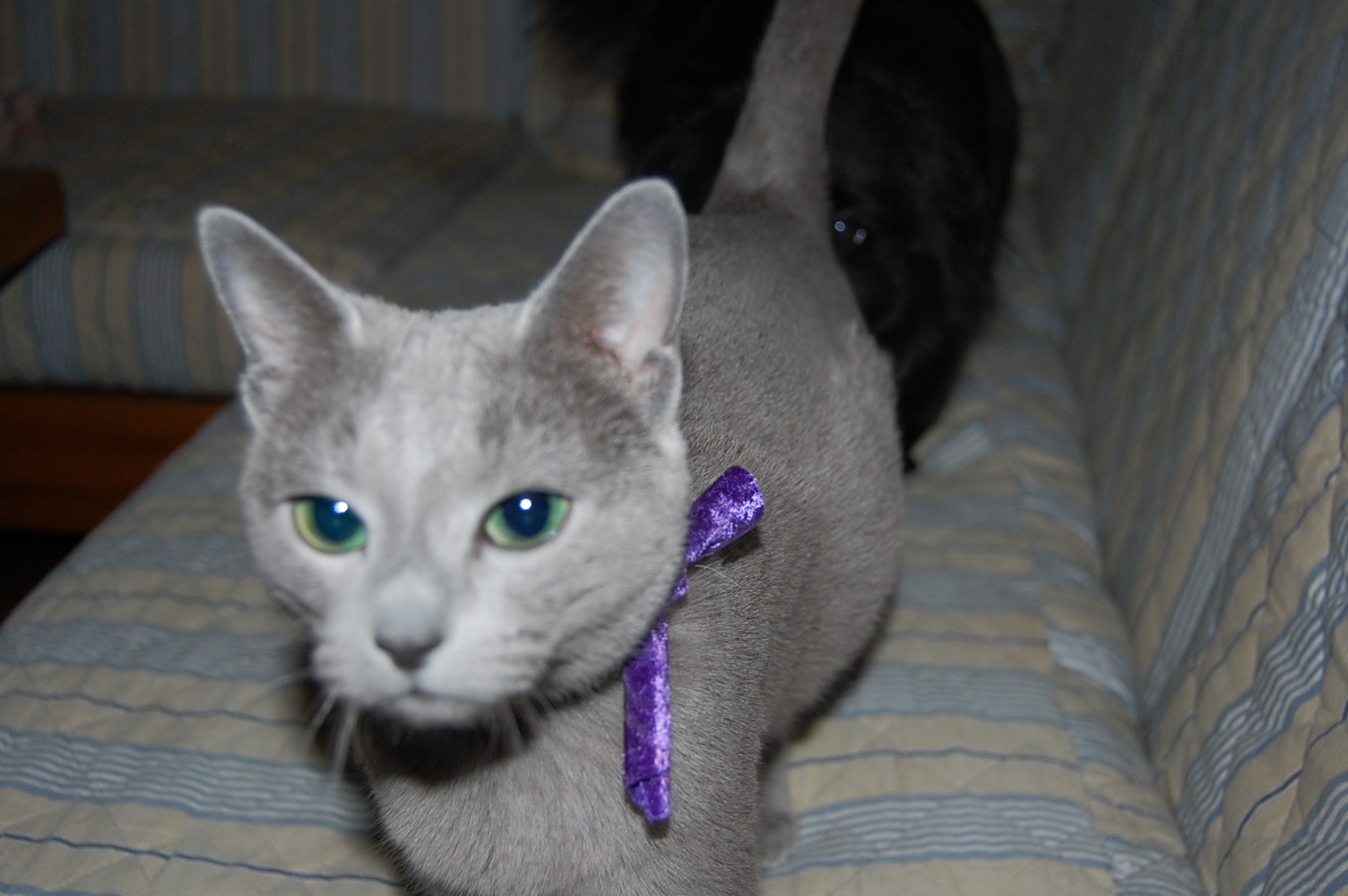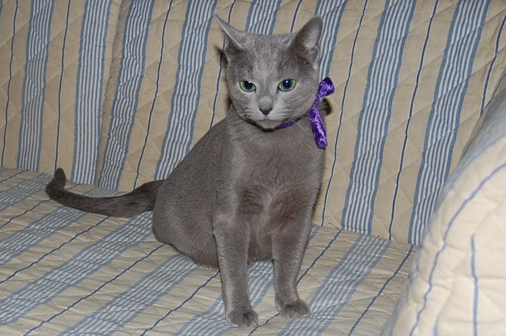 I dag blev jeg bedt om billeder af min Russian Blue Xantippe, og jeg fandt hurtigt ud af at det var meget nemmere at tage nogle nye billeder af hende, end det var at finde nogle af de gamle billeder frem imellem de tusindvis af billeder jeg har liggende. Xantippe var også rimeligt samarbejdsvillig, det vil sige at hun var fuldstændig ligeglad med hvad jeg lavede, og bare ignorerede mig. Når jeg tager billeder af hundene så er de meget obs på mig og kommer hele tiden hen til mig, og så er det ikke let at tage billeder af