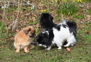 Der var faldet sne og jeg ville så gerne have billeder af hundene i sne, men sneen forsvandt meget hurtigt og hundene søgte hen i den ende af haven hvor solen havde mest magt.