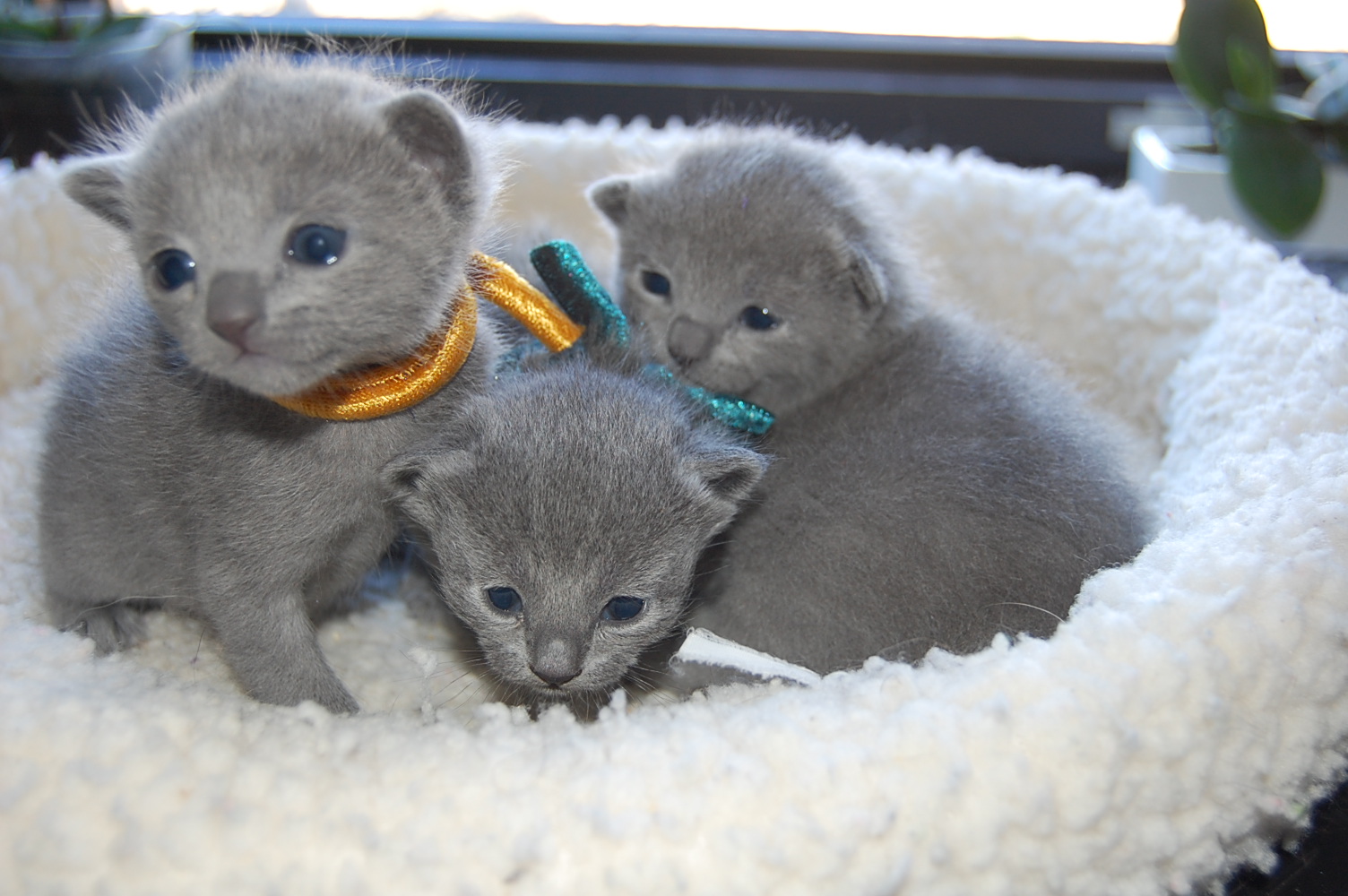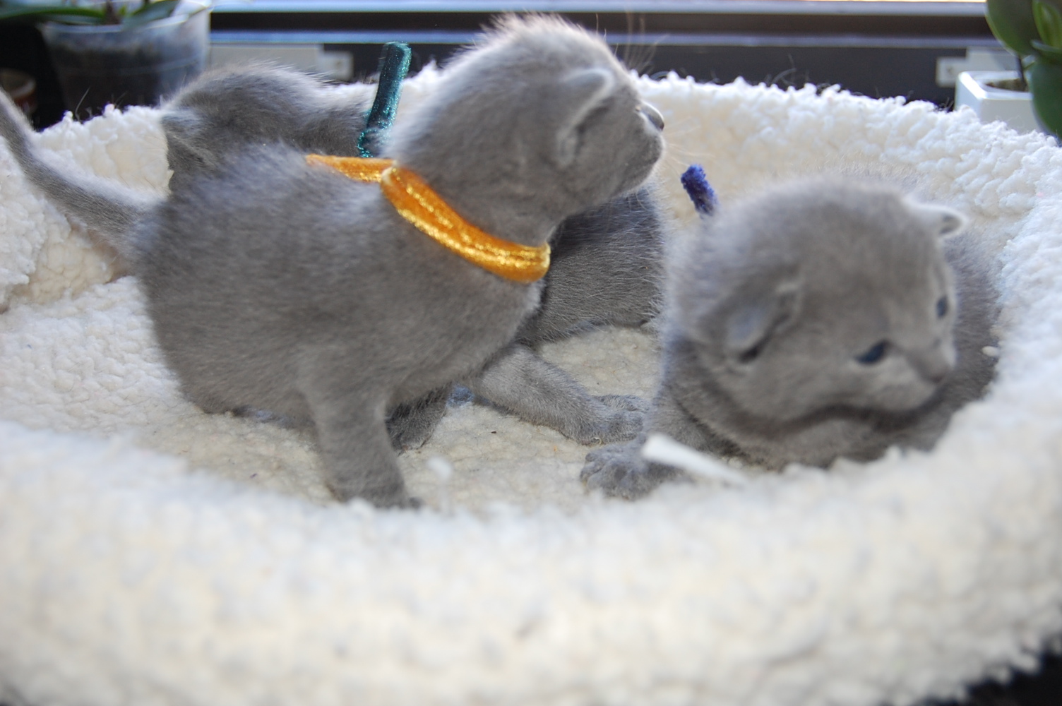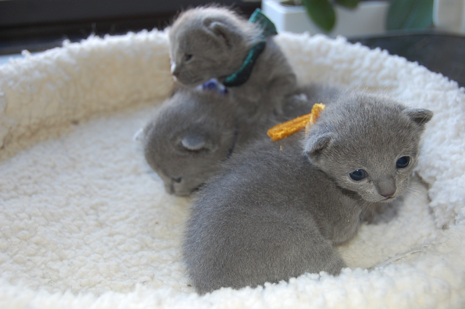 Xantippes killinger vokser så det er en fornøjelse at følge med i hvad der sker i killingekassen. Det er jo tre hunkillinger hun har fået denne gang og de er til salg hvis der er nogen der har lyst til en killing af denne nemme og charmerende katterace. Mine russere kan jeg jo slet ikke blive træt af at betragte, for de er så energiske og dygtige når de klatrer rundt og leger ude på legepladsen, jeg har bygget til dem, og hvis de midt i det hele kommer i tanke om at nu er det kæletid, så skal de jo nok sørge for at gøre opmærksom på det. Killingerne er jo kun små endnu, men da jeg ville fotografere dem på den lille kattepude, måtte jeg flere gange flytte dem tilbage , for der var mange spændende ting de ville se nærmere på.