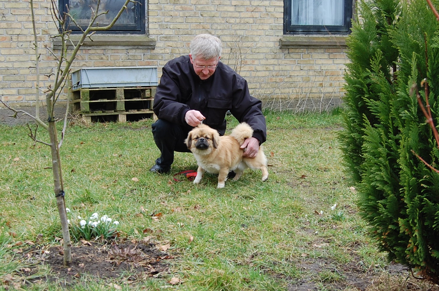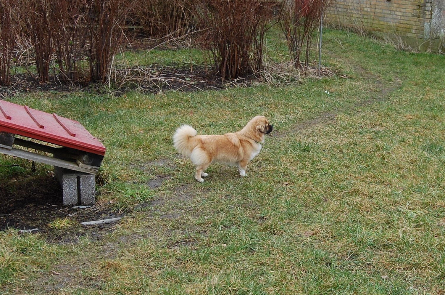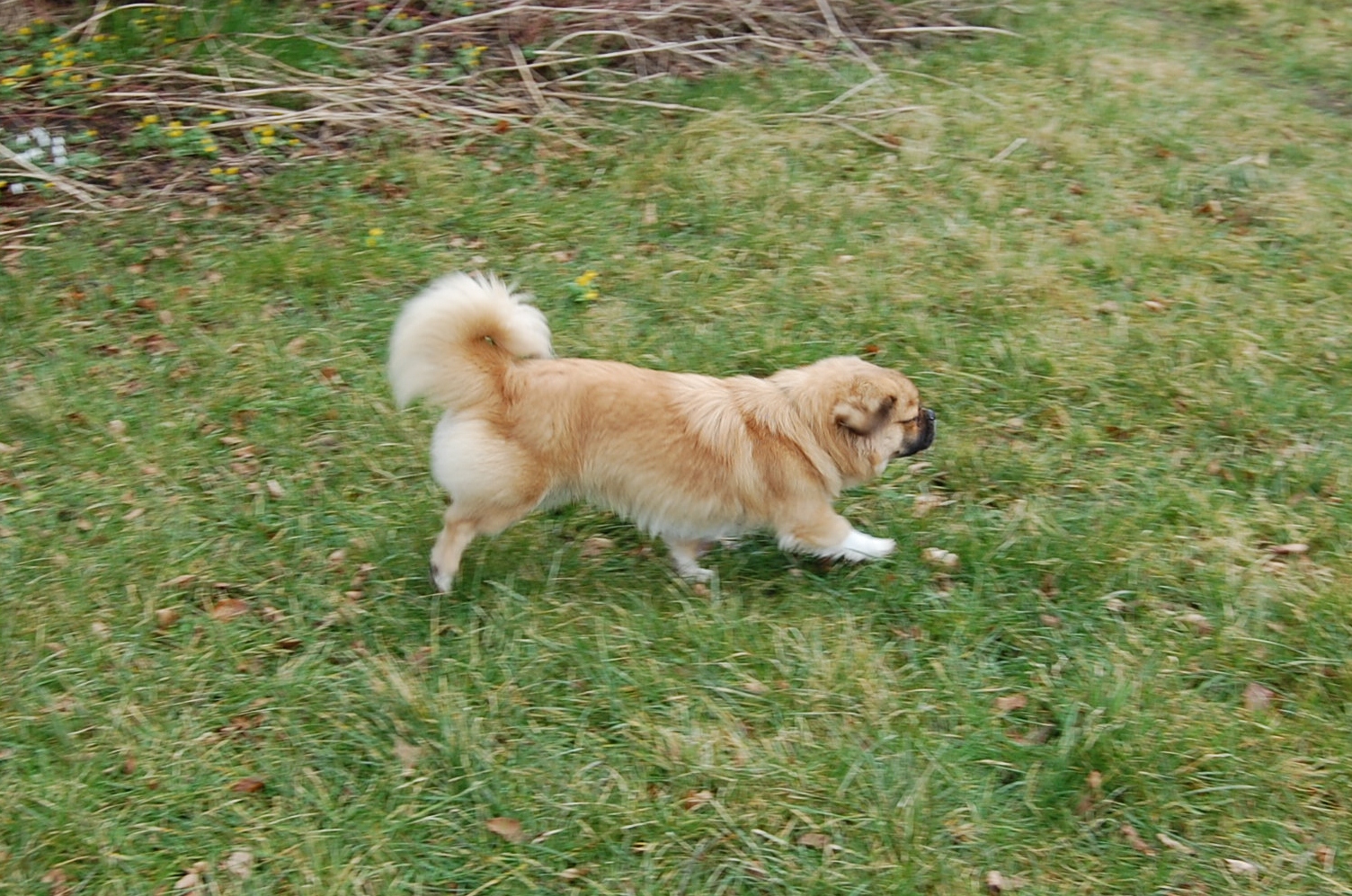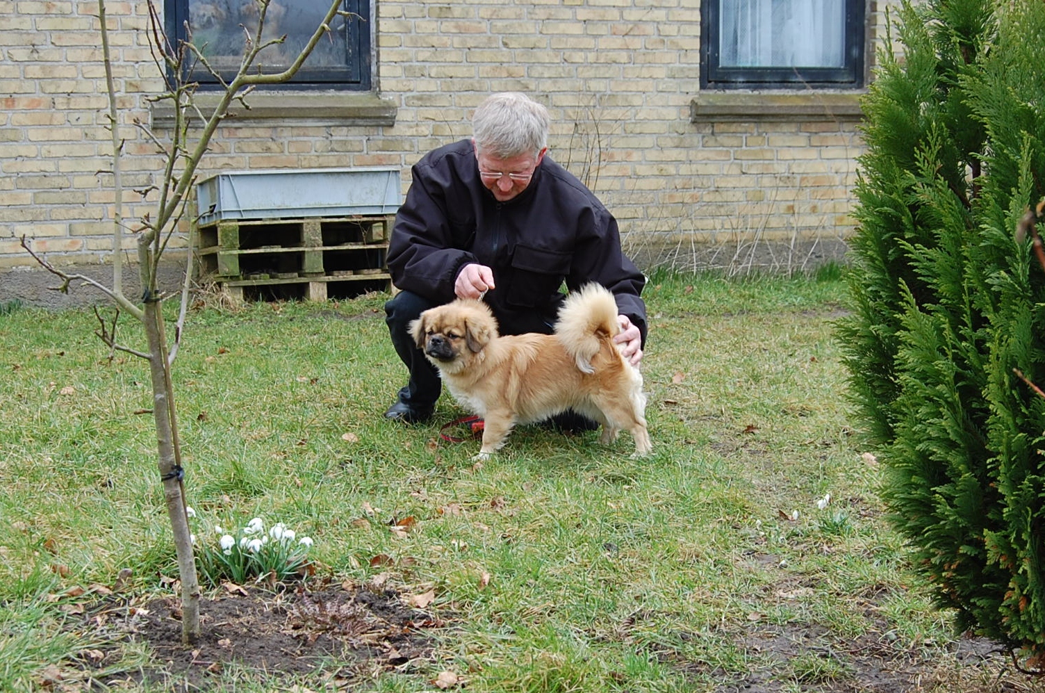 var på et hurtigt besøg her i dag og så skulle jeg da lige have et billede af mit smukke opdræt, for smuk det er ikke ordet, han er bare rigtig lækker. At han så ikke havde tid til at stå stille og posere, det burde jeg jo havde kunnet regne ud, når jeg nu vidste at alle mine hunde, incl. de løbske tæver, havde været ude i haven på skift, lige inden Lamar kom.