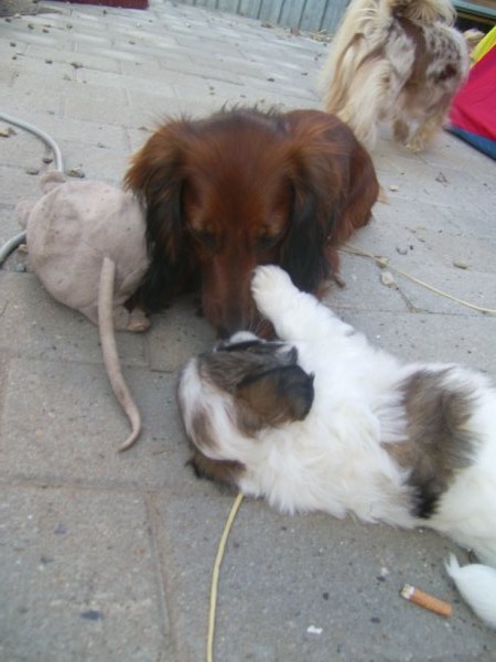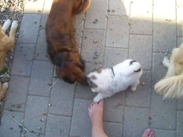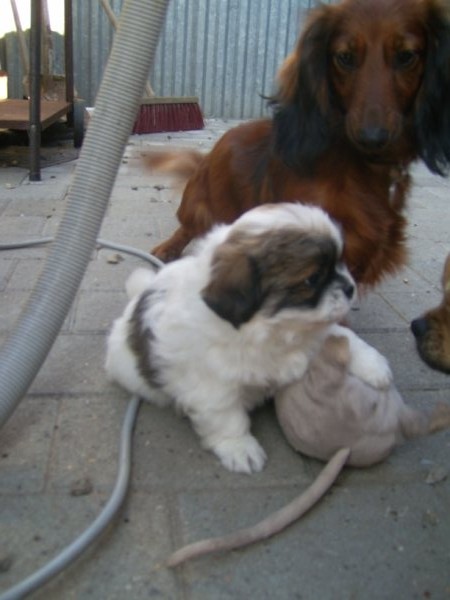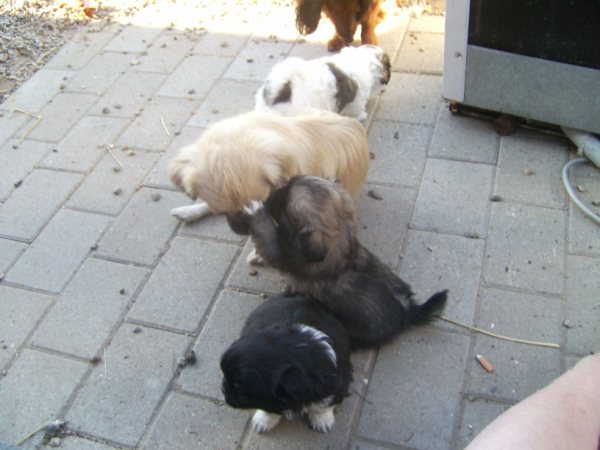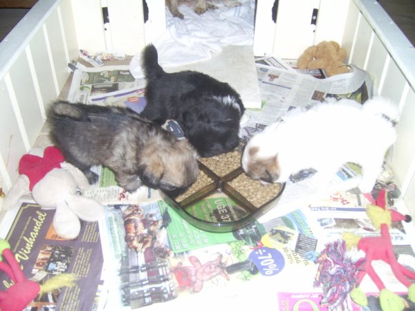 Hvalpene trives, de spiser selv, vokser godt og kommer med de andre hunde udenfor, hvor de nyder friheden og alt bliver undersøgt med oprejst pande og logrende hale. Hector vejer nu 1482 gr, Herkules 1391 gr og Heicka 1160 gr. Pigen på nogle af billederne er Malene på 11 år som sammen med resten af familien gør sit til at disse hvalpe, er helt klar over at der i huset altid er èn der er klar til at nusse om dem