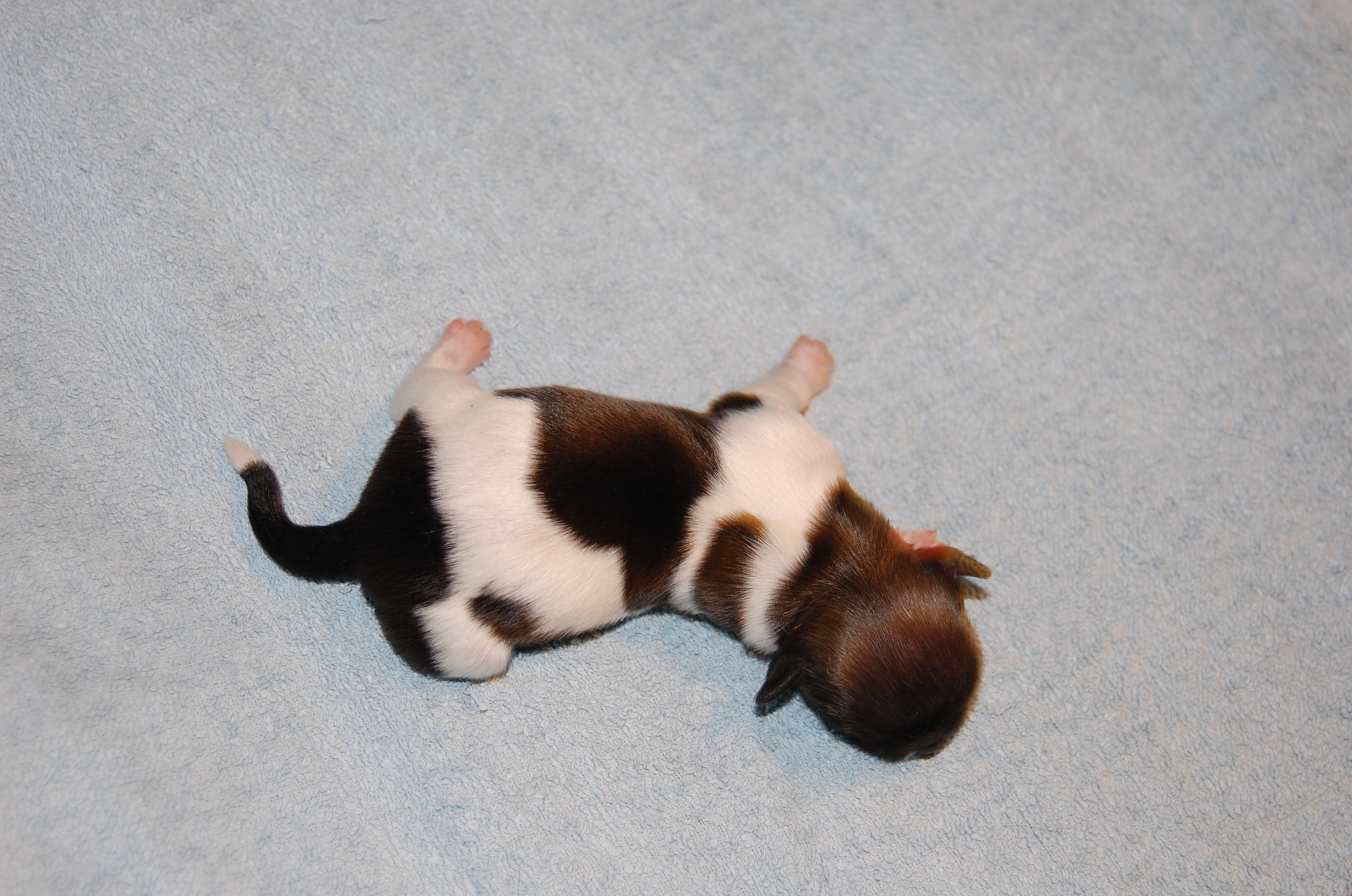 Lige siden jeg første gang så en party colour er det den farvevariant der har stået mit hjerte nær, og jeg har drømt om , engang, at lave en party med sundhed i top og lækkert temperament, ikke for stor, lækre bevægelser og pels, mørk mahogni rød / hvid farve, god udstrækning af de farvede arealer, fuldt farvet hovede, ja kort sagt alt hvad hjertet kan begære af en tibetansk spaniel i party colour. Om jeg har nået det hele ved jeg jo ikke endnu, men i Lady`s kuld er der en tævehvalp, der ser ud til at være et godt bud på min drømmetibbe, og det bliver spændende at følge hende når hun vokser til. Kuldet har to mørk røde forældre der begge har party colour i generationen lige bag, Tibbelabben`s Lady In Red og Grothovda`s Skamar = Skifer. Begge er importeret fra forskellige kenneler i Norge, Begge to er rigtig lækre tibber med øjenlysninger uden anmærkninger og Patella 0/0. Kuldet består af 4 hvalpe, en rød zobel han, en rød zobel tæve, en rød zobel tæve med lidt hvidt på brystet og som den allersidste kom der en party colour tæve, der nok bliver her i huset, hvis alt går som det skal.