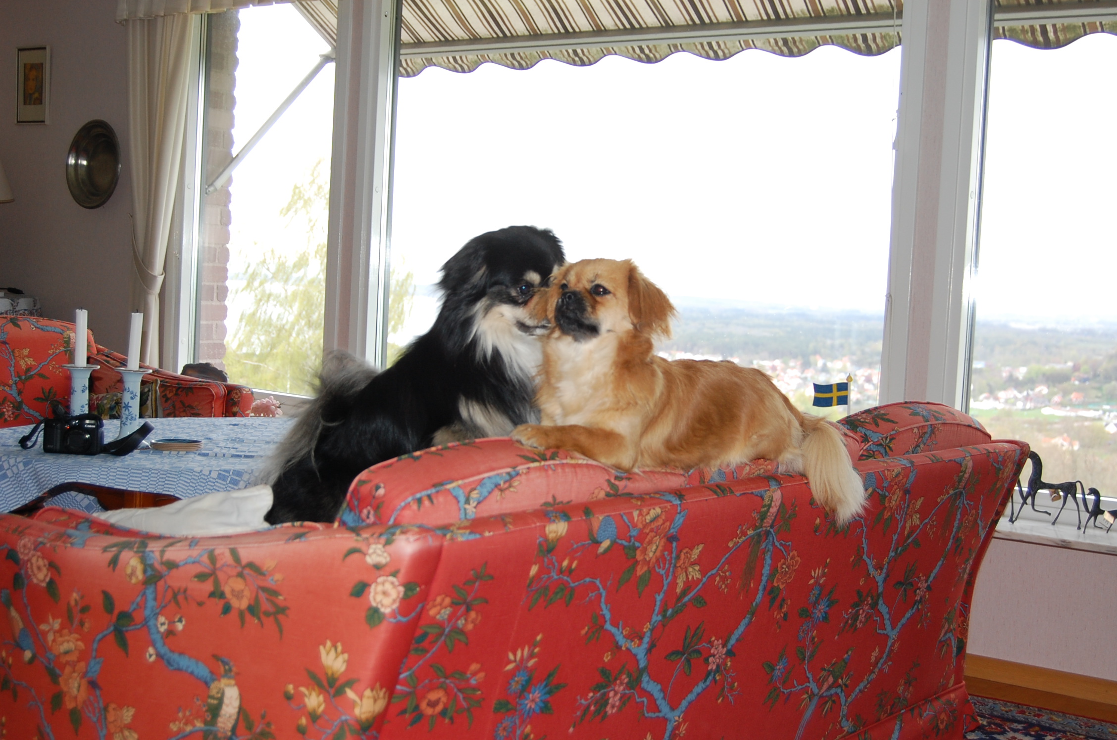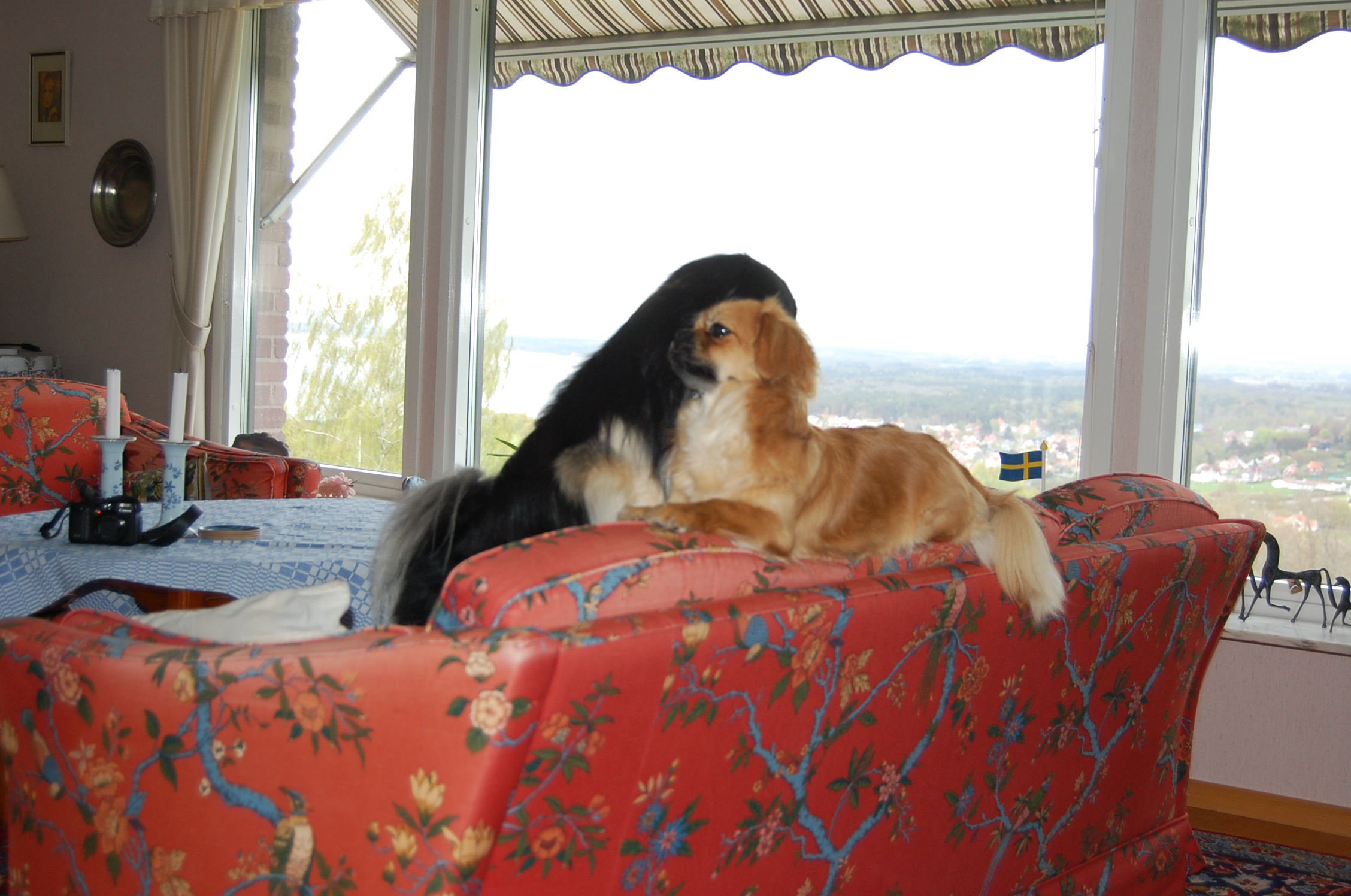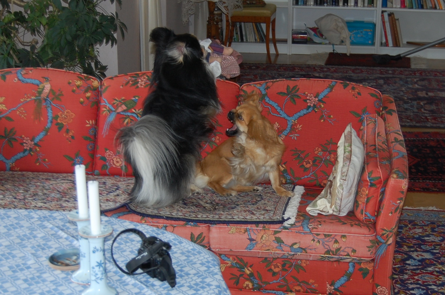 Ruby er i løbetid og det var bestemt at hun skulle parres, så der blev diskuteret forskellige mulige lækre fædre til hendes hvalpe. Vi blev enige om at dejlige Milton, der er black og tan, var et godt bud. For at være helt sikre på at hun var klar, tog vi til dyrlægen mandag morgen og fik taget en progesteron test. Testen viste at hun var endog meget klar selvom det kun var 9. dag i løbetiden, så dyrlægen sagde kør med det samme. Bilen var pakket og klar, så det varede ikke længe før vi var på vej. Vi kom godt over til Sverige og fandt også fint hvor vi skulle hen, men så var det ligesom om det begyndte at gå lidt mindre glat. Milton blev meget interesseret i den dejlige tibbe frøken vi præsenterede for ham og han opførte sig helt efter reglerne og kurtiserede den skønne jomfru nænsomt, men ihærdigt. De var så søde sammen når de legede, og han fik lov til at kysse og slikke alt det han ville, men når han nåede til at lægge en pote op på hendes ryg, så var det slut med idyllen. Så sagde hun stop, og det så voldsomt så stakkels Milton røg flere skridt baglæns for ikke at blive bidt. Vi tænkte nok, at det jo også var første gang for hende, og vi prøvede at hjælpe dem ved at holde hende og snakke med hende imens, men det kunne simpelthen ikke lade sig gøre, for frøkenen ville ikke ! Vi regnede med at det ville gå bedre næste dag, når de havde kendt hinanden lidt længere, men det blev faktisk bare værre, og så kørte vi skuffede hjem igen. Da vi kom hjem igen skyndte Ruby sig hen til hegnet hvor Oliver var bagved og skubbede bagdelen hen imod ham. Der var han jo , hendes fæstemand, og hun havde gemt sin dyd til ham, ja hun var faktisk meget klar til at blive parret, og indtil nu er hun parret med Oliver to gange og jeg tror ikke at de er færdige med det endnu.