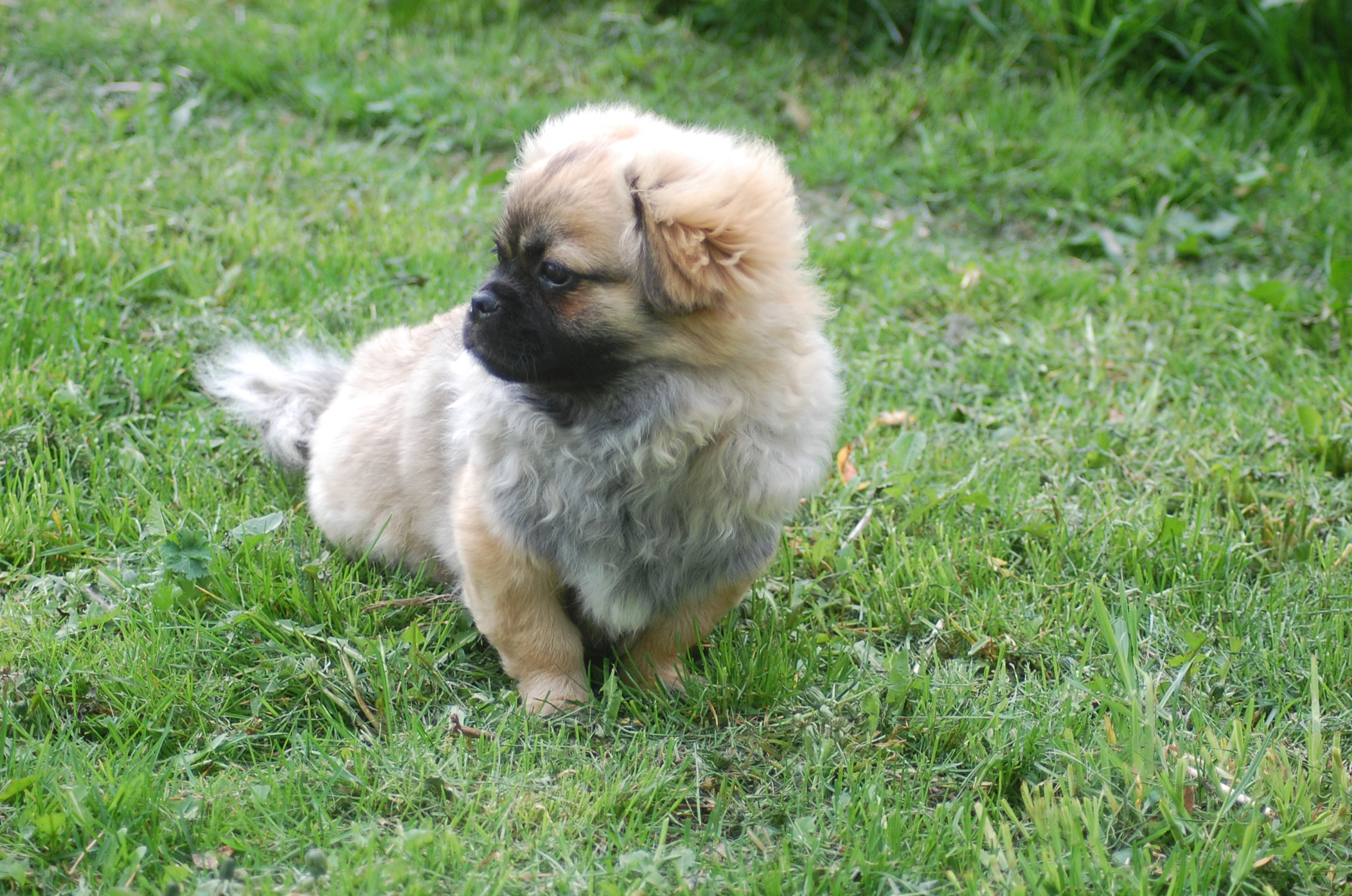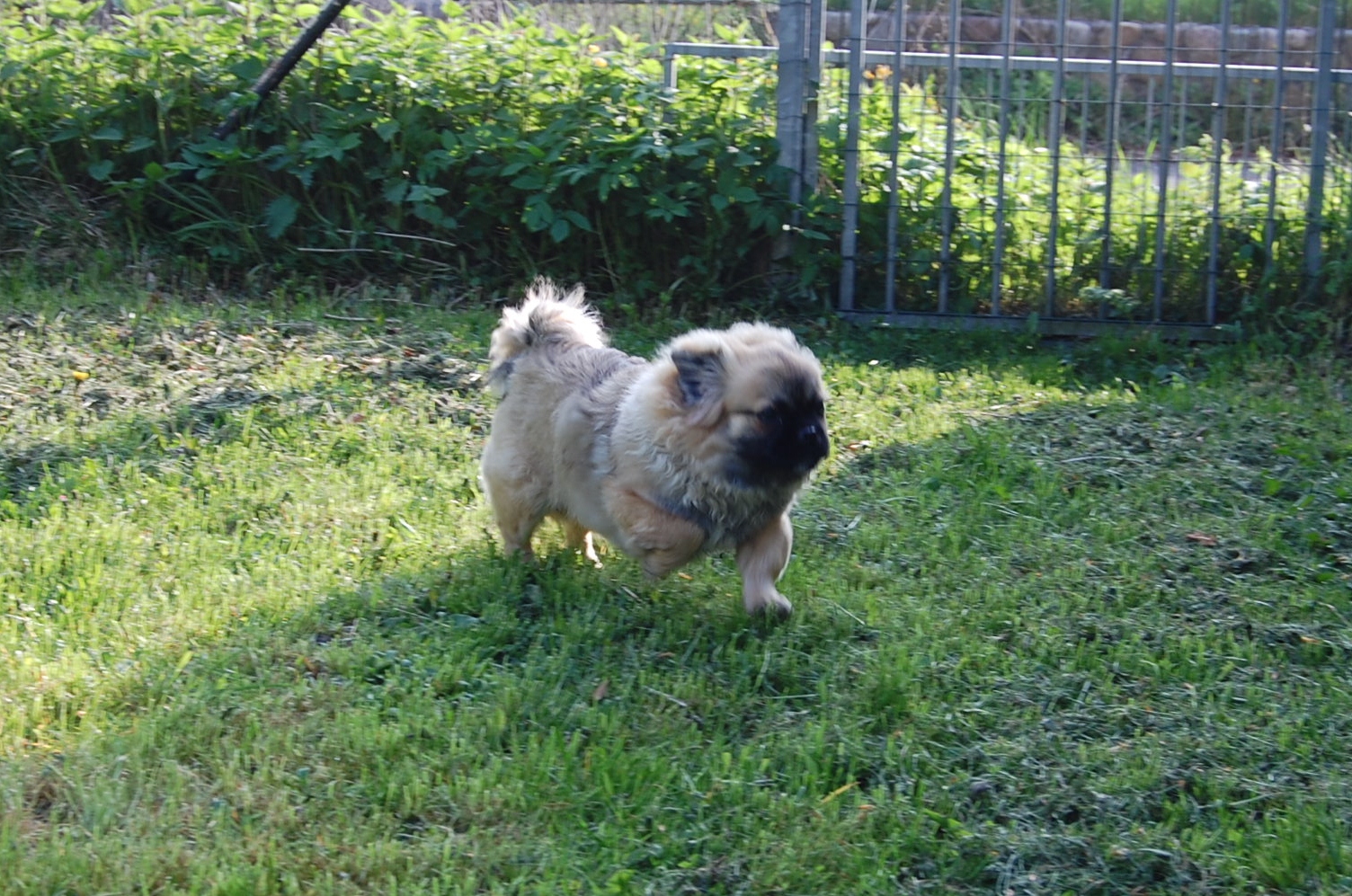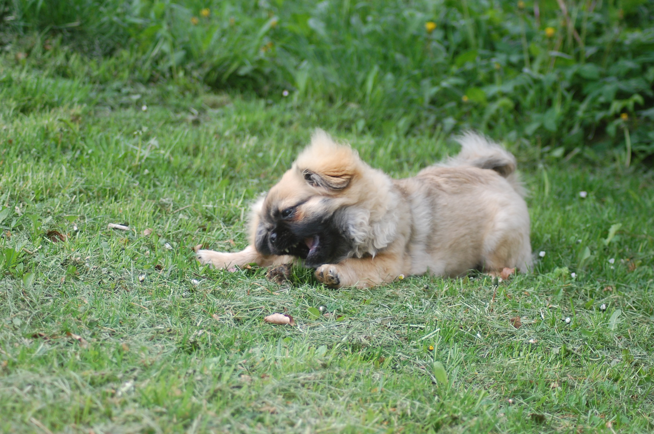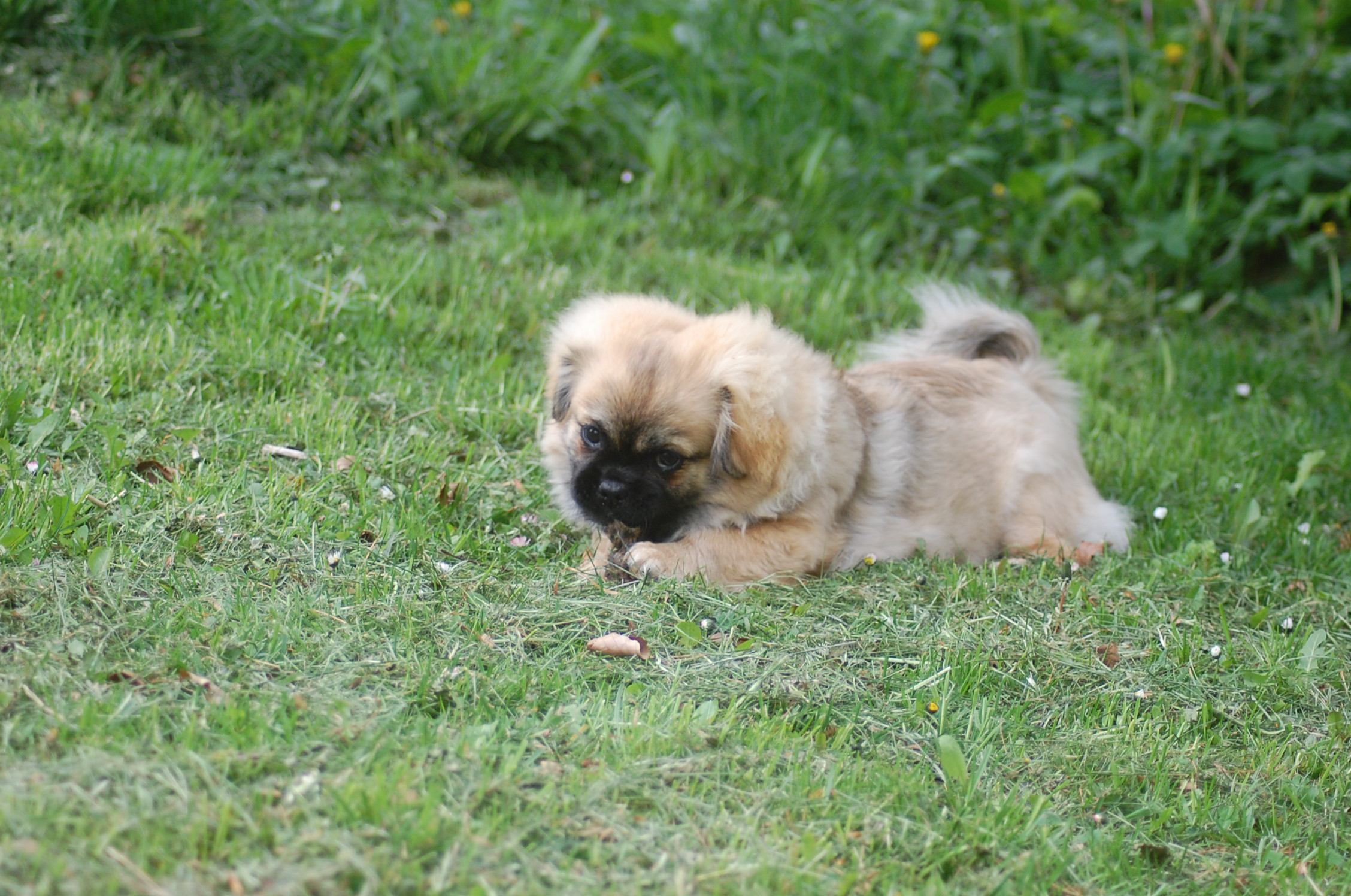 er blevet en rigtig lækker hund og jeg tror han ved det. Han er lidt svær at tage billeder af fordi han er så selskabelig at han helst vil være lige ved siden af mig hele tiden. Ude i haven fandt han et lille stykke skind som hundene har fået at lege med og de andre har tabt interessen for det men for Monty var det nyt, så det blev grundigt undersøgt indtil der var andre spændende ting der fangede interessen.