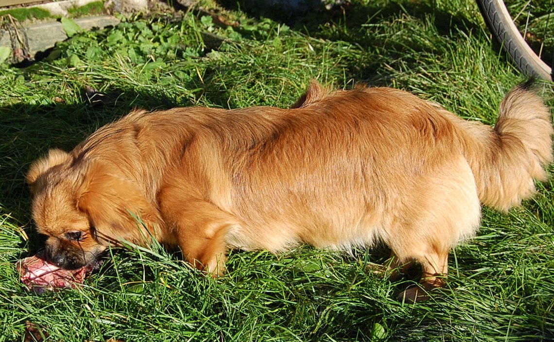 er bare det helt perfekte navn til min lille tibbe, for RØD kan man roligt sige at hun er.Jeg håber på at hun udvikler lidt mere ” ladylike ” manerer som hun vokser til, for endnu har hun alt for meget energi til at navnet passer helt 100 %. Det var en god ide at give hende et råt kødben for det var hun så optaget af at hun var til at få nogle gode billeder af.