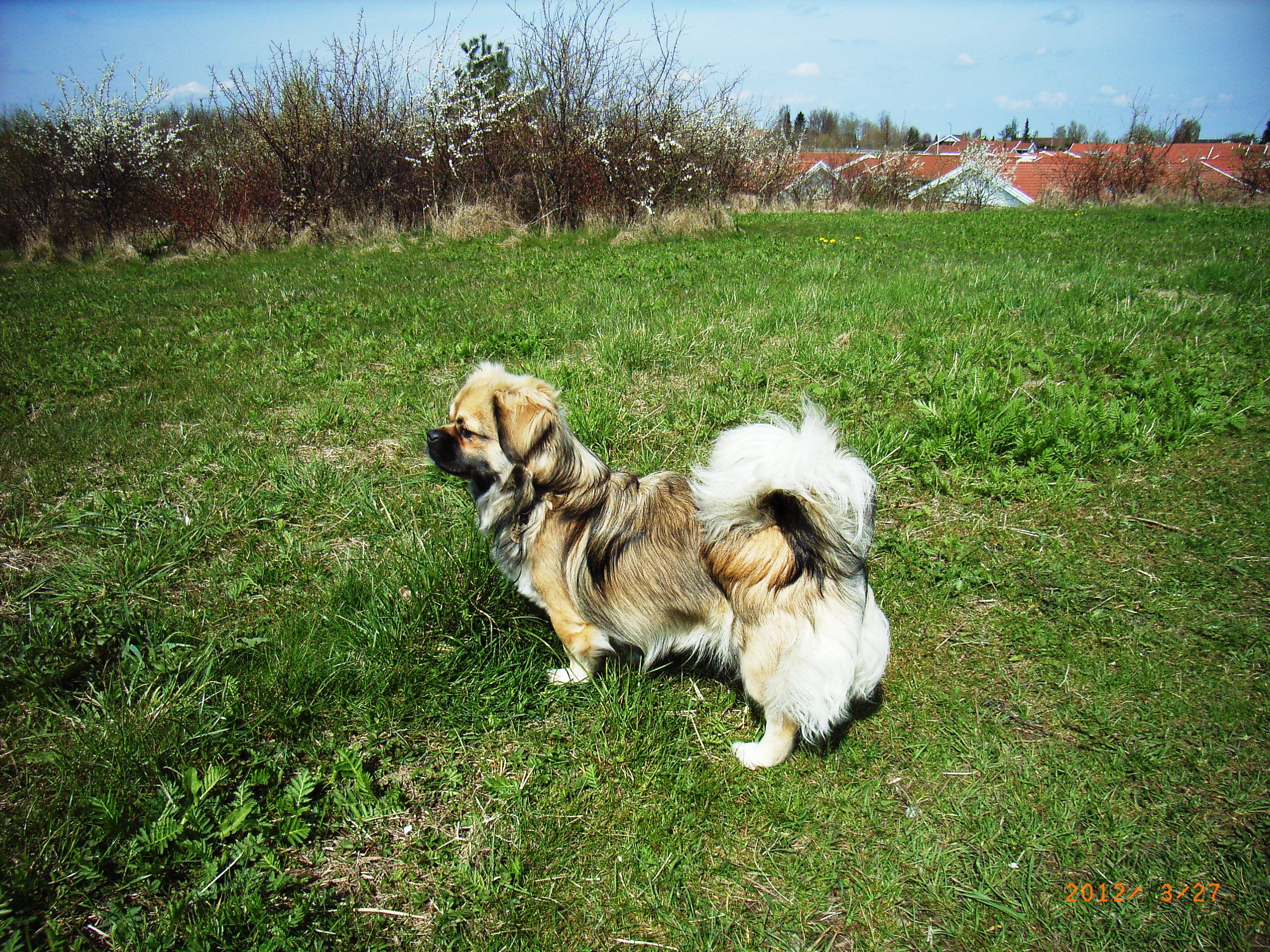 Han er meget glad for sine gåture ( bare ikke i regnvejr) og vil så gerne hilse på de andre hunde vi møder.