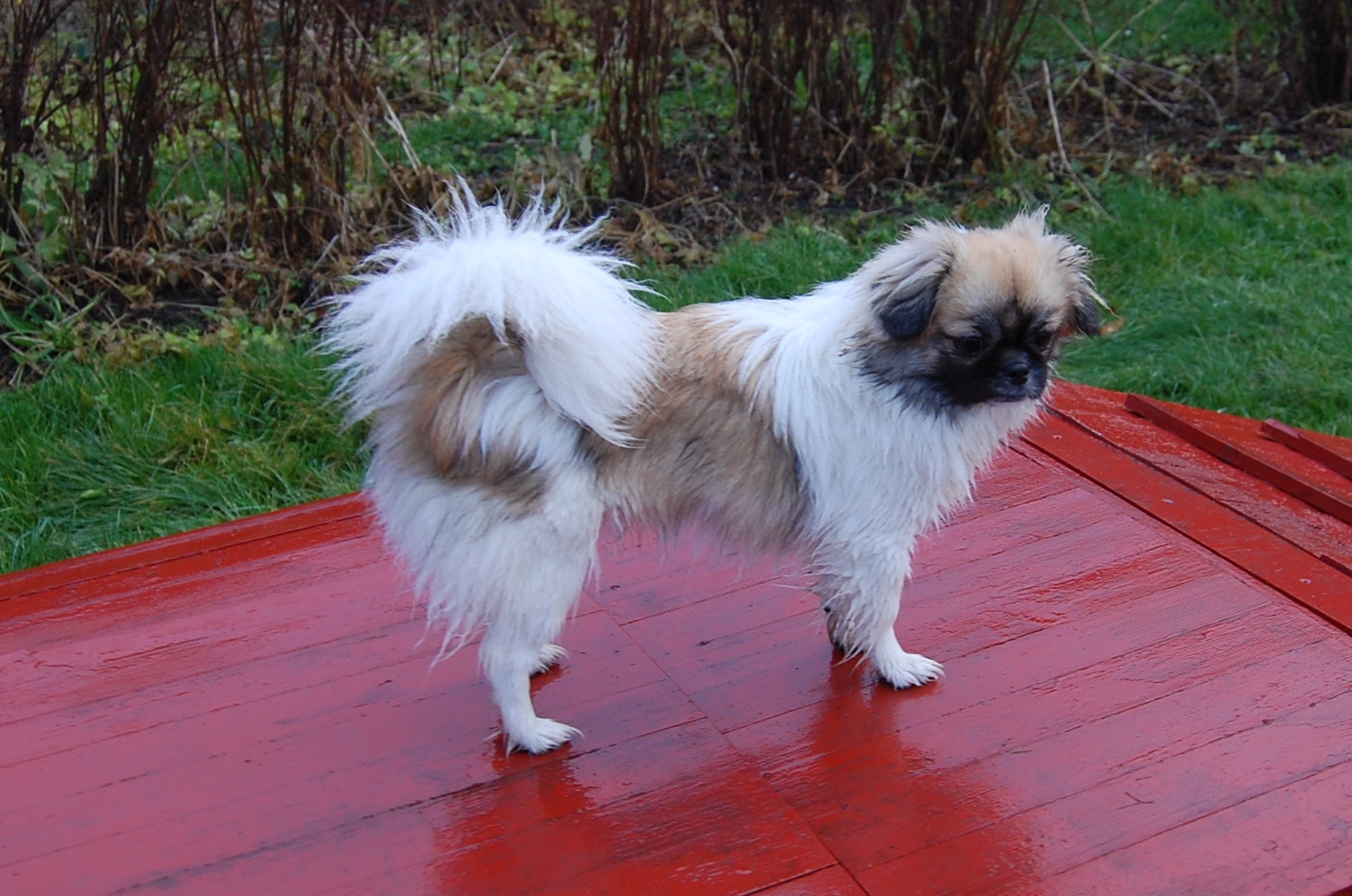 prøvede jeg at få nogle billeder af i dag, men de er jo slet ikke så nemme at fotografere på en gråvejrsdag med megen fugtighed, og Ley-La har jo slet ikke fået pelsen tilbage efter at hun havde hvalpe. Ruby er ved at blive pæn igen efter sidste gang hun var i fældning men hendes hale mangler stadig en del før den er rigtig pæn. Basha og Bonnie er ved at være teenagere og det er ikke det smukkeste tidspunkt for en lille tibbe.