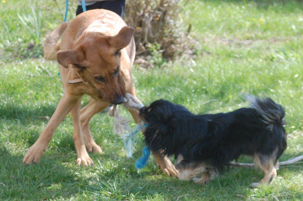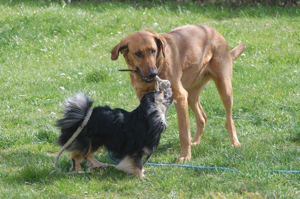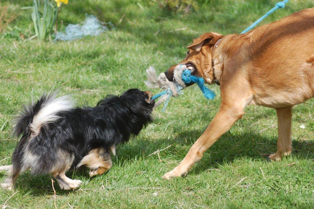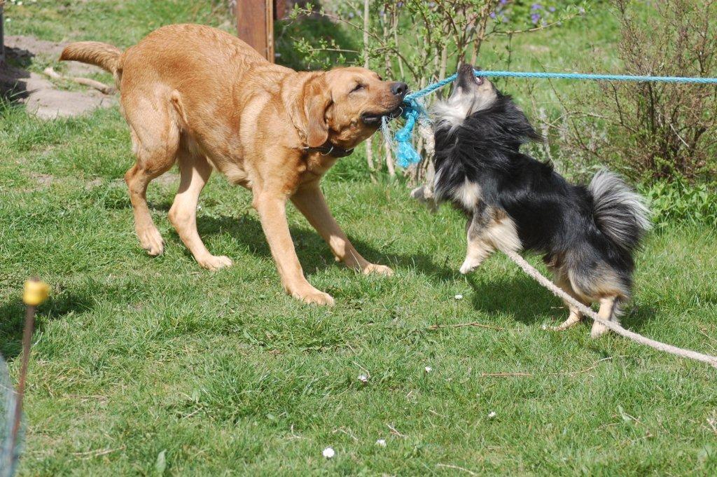 Bonnie, den store hund, elsker at lege med de små tibber, og lidt tov-trækning kunne da være sjovt ..