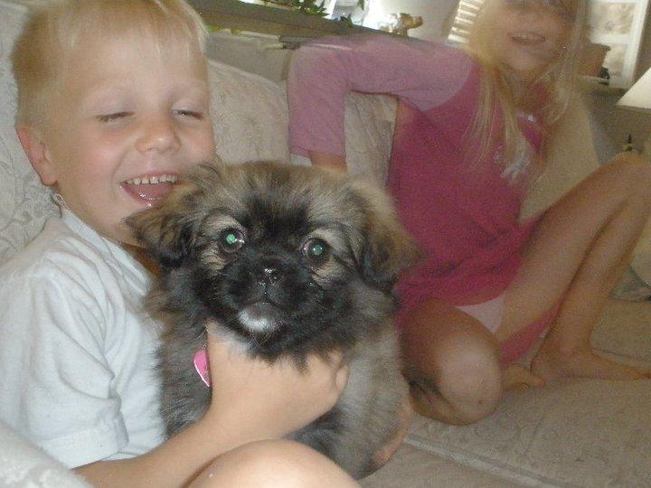 fik jeg lige tilsendt nogle billeder af. Som man kan se er hun blevet større siden vi så noget til hende sidst og hun er efter ejerens udtalelser blevet en selvstændig lille frøken der elsker barnebarnet på to år højt, men ellers har jeg ikke fornemmelsen af at hun, endnu, kan vinde i en lydighedskonkurrence.