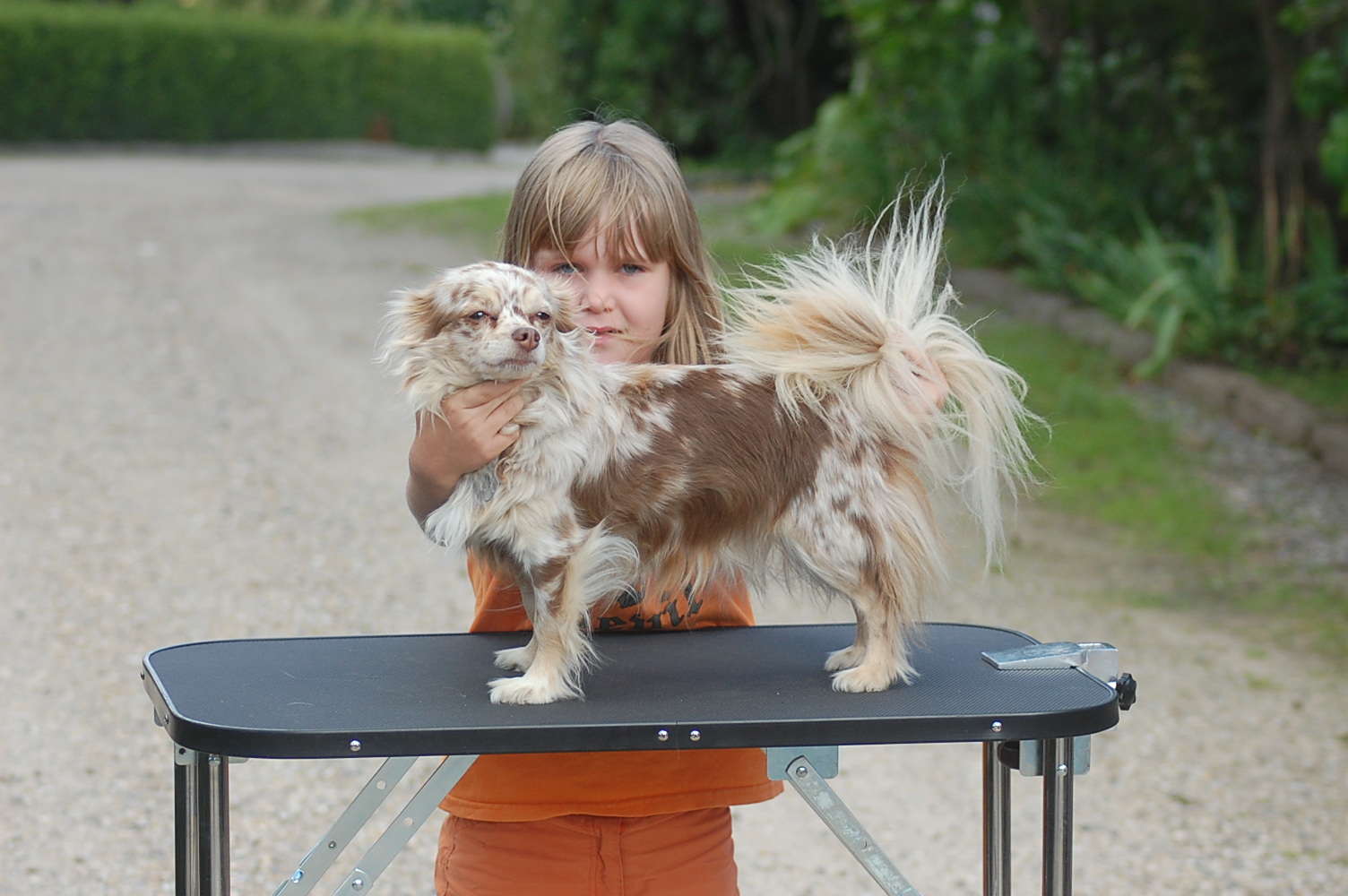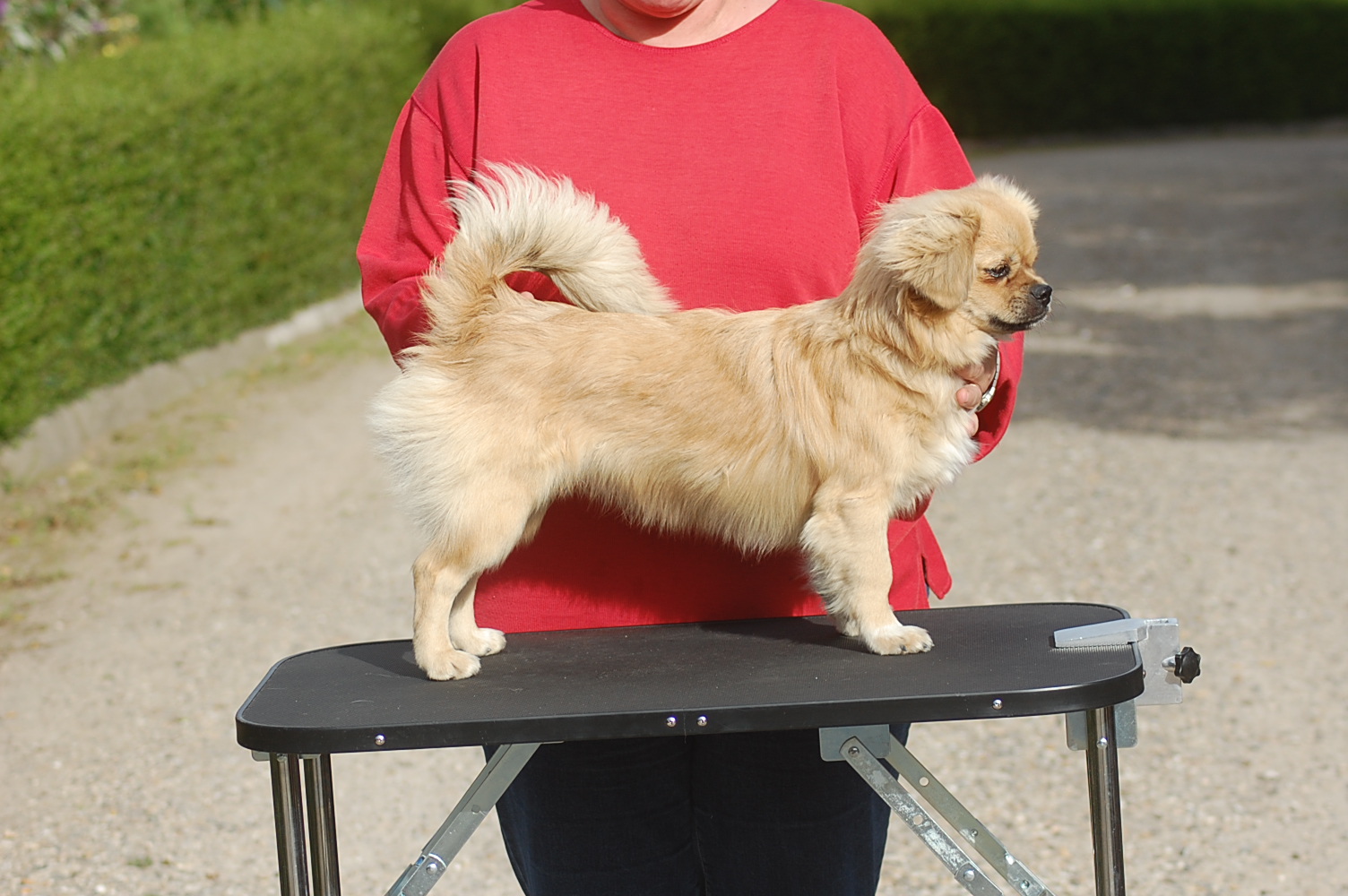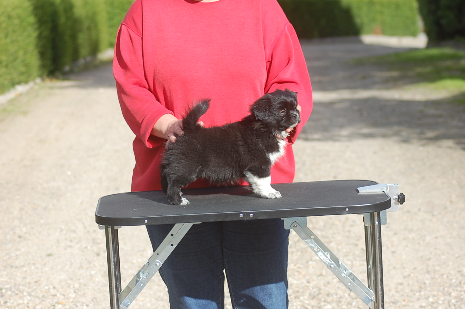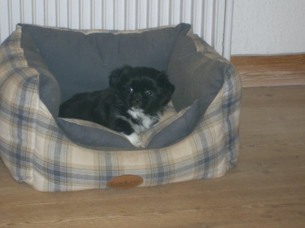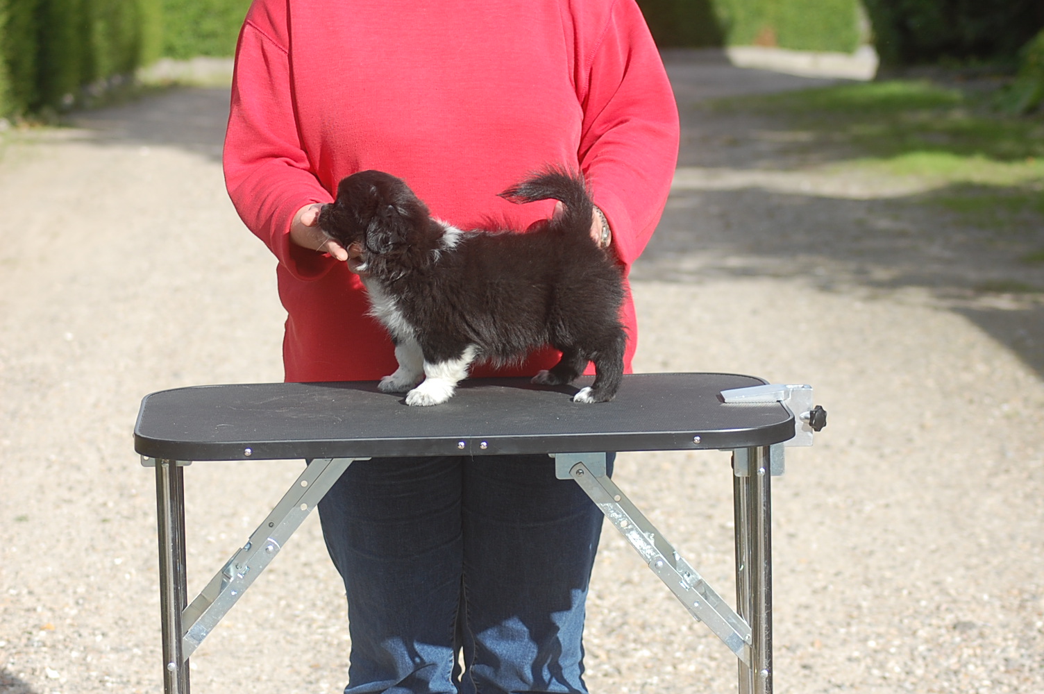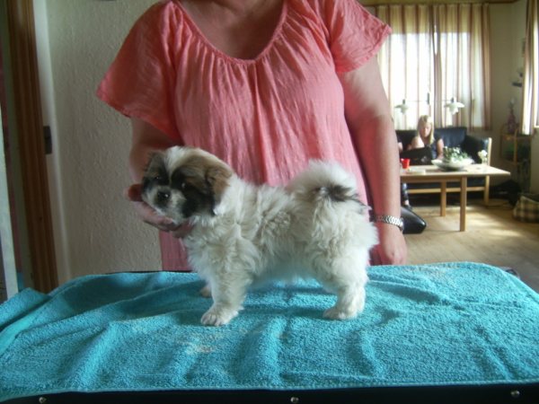Det er virkelig en meget stor personlig sejr for mig at 2 års forhandlinger endelig er lykkedes. Mange ting har lagt sig i vejen for denne byttehandel, hvor jeg henter en lækker tævehvalp fra Kennel Tibbelabben til Danmark og til gengæld sender en ligeså dejlig ung hanhund derop. Jeg ønskede mig en tævehvalp der lignede moderen Tibbelabbens Lopez Maha, der dels er en af de meget smukke party colour der har et fuldt farvet hovede, men som også har en helt vidunderlig mørk rød farve på de farvede områder og med mange mørke dækhår. Min tæve er ikke party colour,