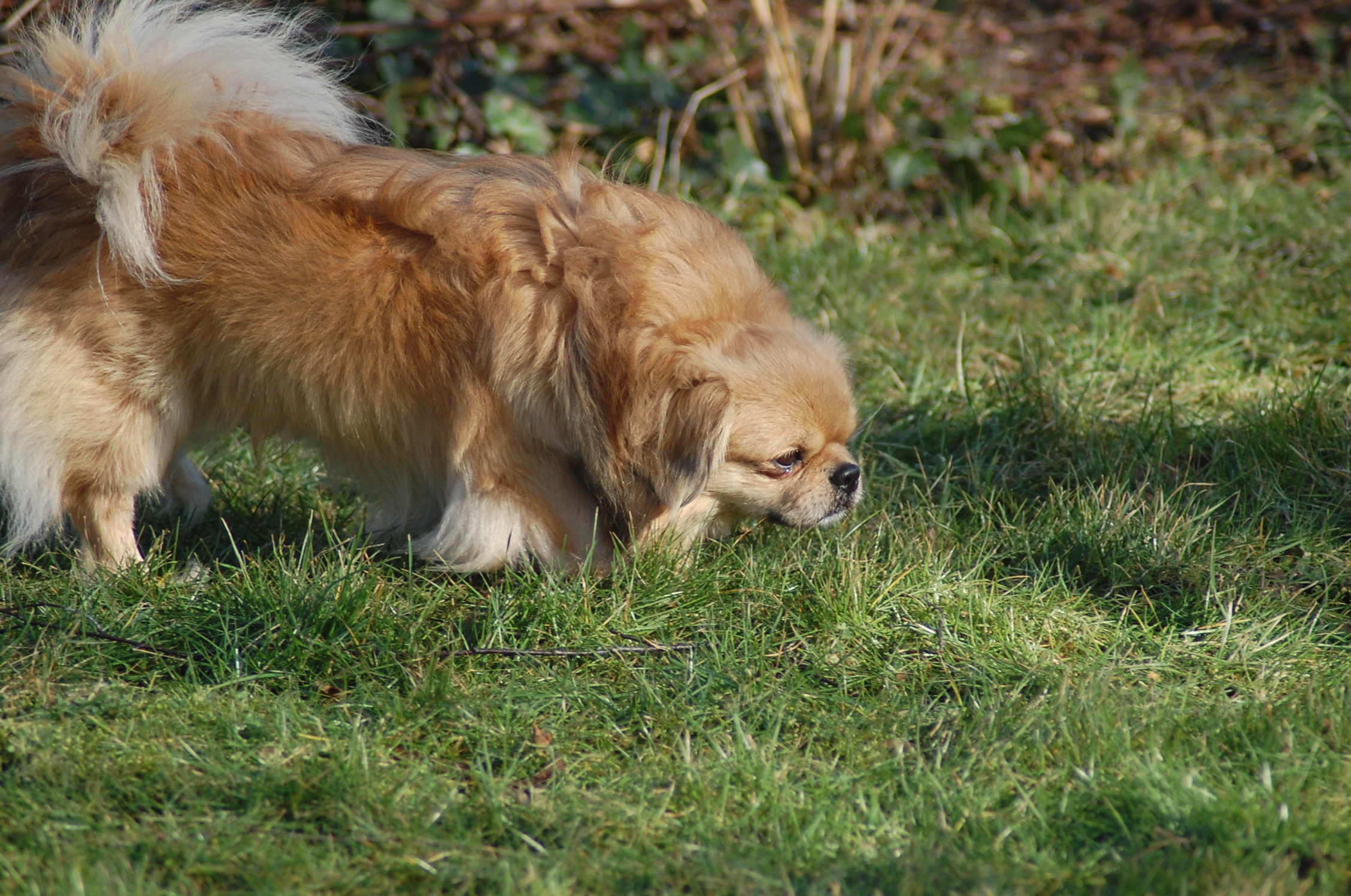 I dag er Tibbis Choco = Cæsar 4 mdr. gammel. Cæsar er søn af sorte Cilpa hos Kennel Tibbis og min zoble hanhund Jomillas Zixten = Joe. Cæsar er gylden og det er jo et glimrende eksempel på, at man aldrig kan være sikker på hvilke farver der dukker op når man venter et kuld tibbe hvalpe. Jeg synes jo rigtig godt om Cæsar og jeg har fået lidt billeder af ham af hans ejer, Marianne, som jeg vil skynde mig at vise frem.