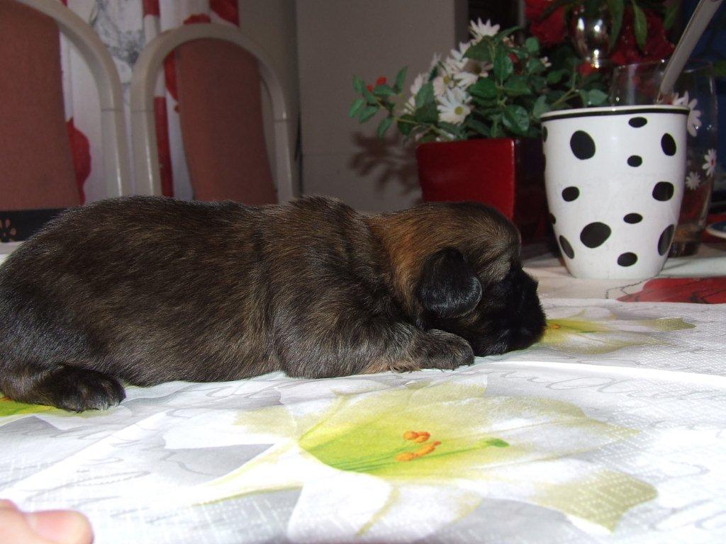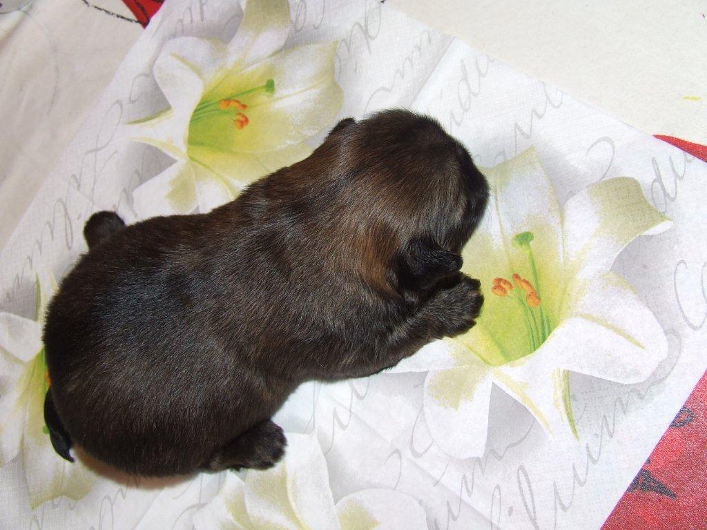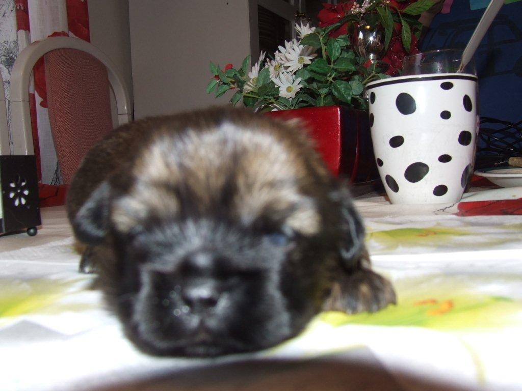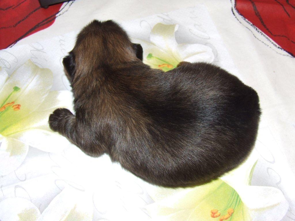 Det er virkelig en meget stor personlig sejr for mig at 2 års forhandlinger endelig er lykkedes. Mange ting har lagt sig i vejen for denne byttehandel, hvor jeg henter en lækker tævehvalp fra Kennel Tibbelabben til Danmark og til gengæld sender en ligeså dejlig ung hanhund derop. Jeg ønskede mig en tævehvalp der lignede moderen Tibbelabbens Lopez Maha, der dels er en af de meget smukke party colour der har et fuldt farvet hovede, men som også har en helt vidunderlig mørk rød farve på de farvede områder og med mange mørke dækhår. Min tæve er ikke party colour,